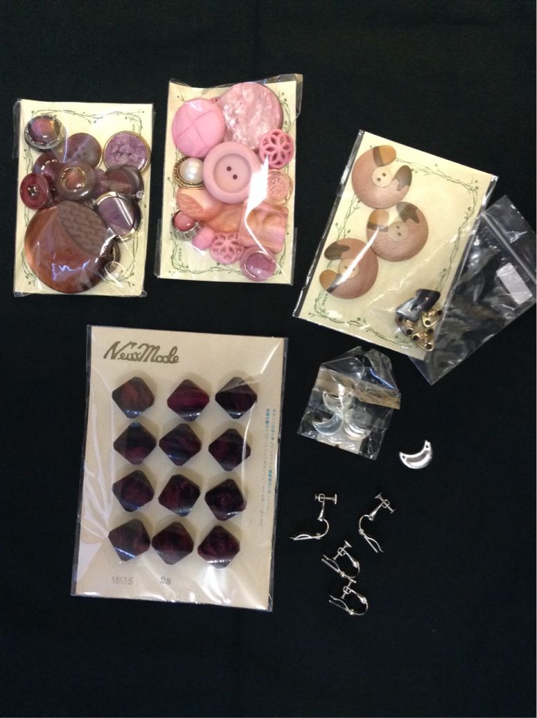 ウキウキして時間を忘れそうになりながら、いくつか購入。手前:赤紫色は、ビンテージだけど、12コで¥800!